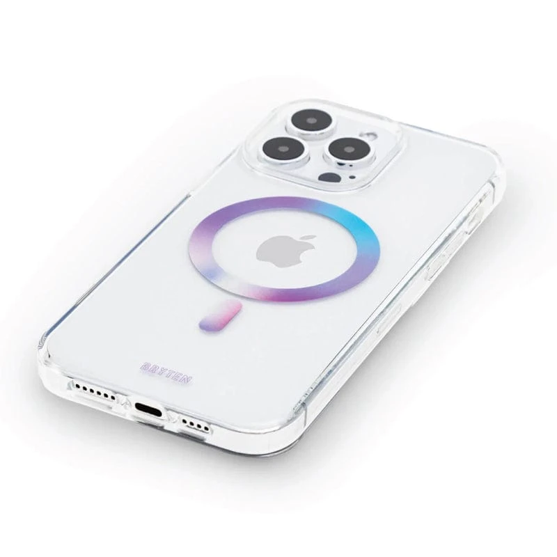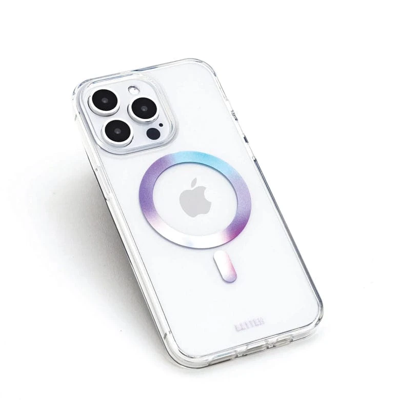 MagSafe meets style with built-in magnets for effortless attachment of your MagSafe charger and accessories, providing the fastest wireless charging experience. The Reflective Iridescent design, made with recycled plastics, adds sparkle while protecting your phone. Provides 10 ft drop protection (3m), a one-piece platform design, and antimicrobial case protection.