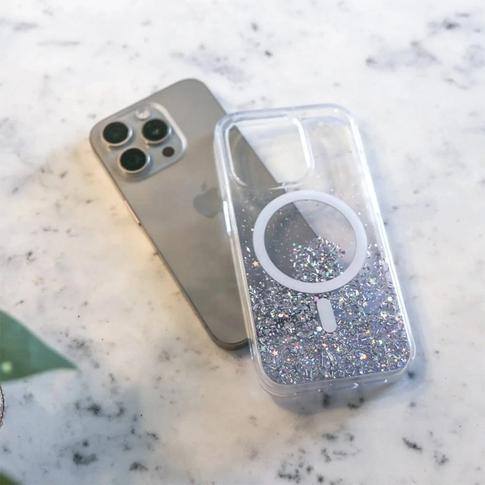 Introducing Starburst 💎 – Elevate Your iPhone 15, 15 Pro & 15 Pro Max. A case that transforms subtly with changing hues, ensuring an exclusively distinct look. This iPhone 15 Pro Max case features integrated magnets, seamlessly connecting with your MagSafe charger and accessories for a seamless wireless charging journey.