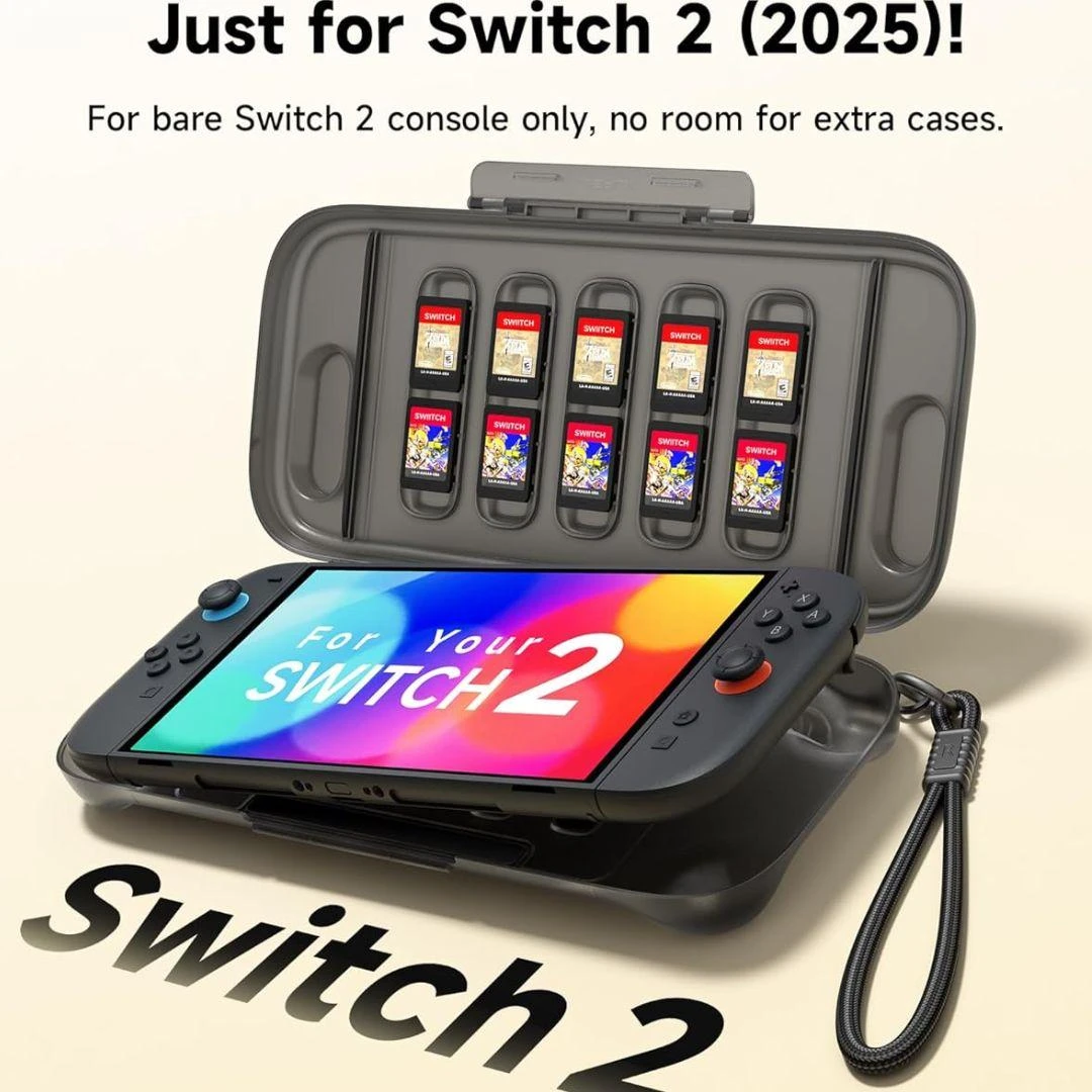 A slim, durable, and stylish hard case for the Nintendo Switch 2 that protects your console, stores your favorite games, and is perfect for travel.