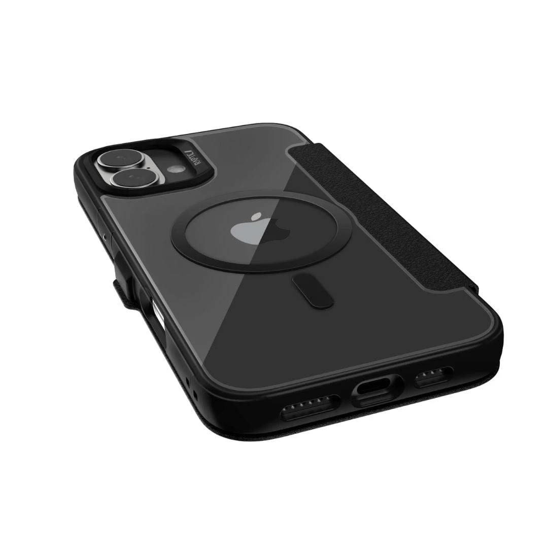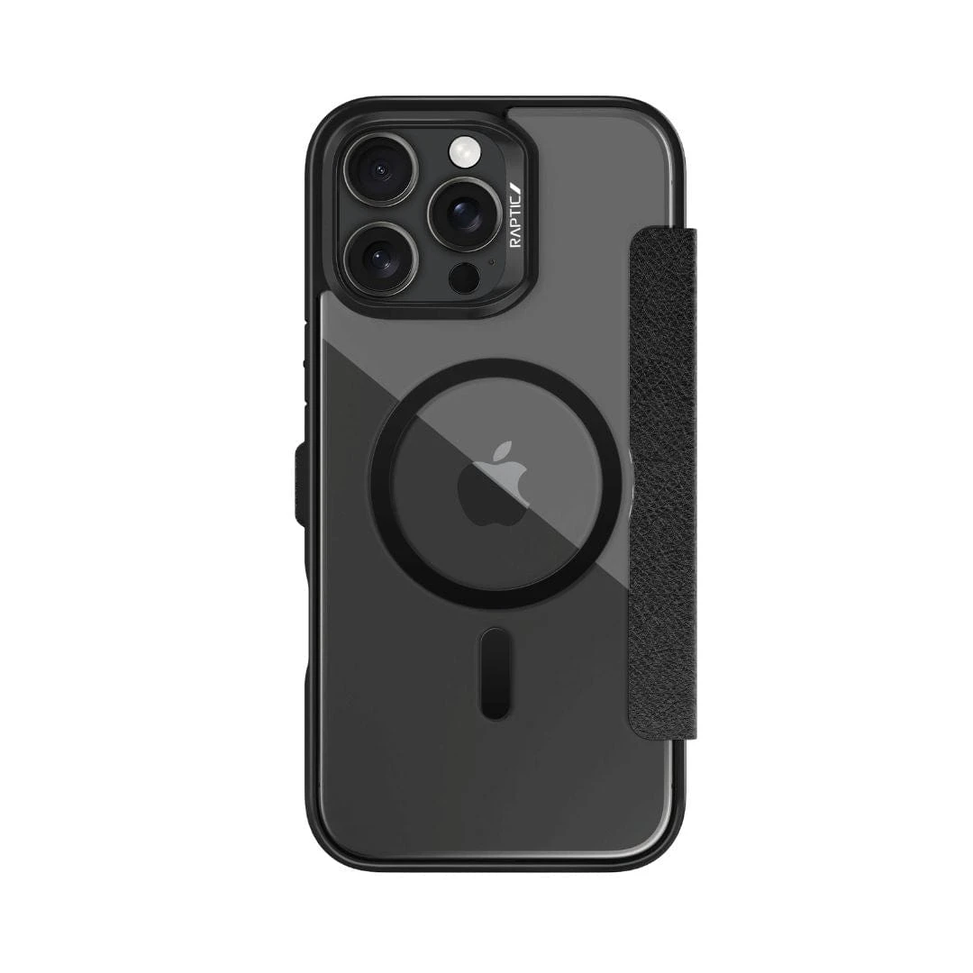 Protect your iPhone 16 in style with the Raptic Urban Folio Wallet Case. It features two card slots for convenient and secure storage of your essential cards. Plus, it’s MagSafe compatible for easy wireless charging and attachment of MagSafe accessories. Its slim design offers durable protection while maintaining a sleek profile.