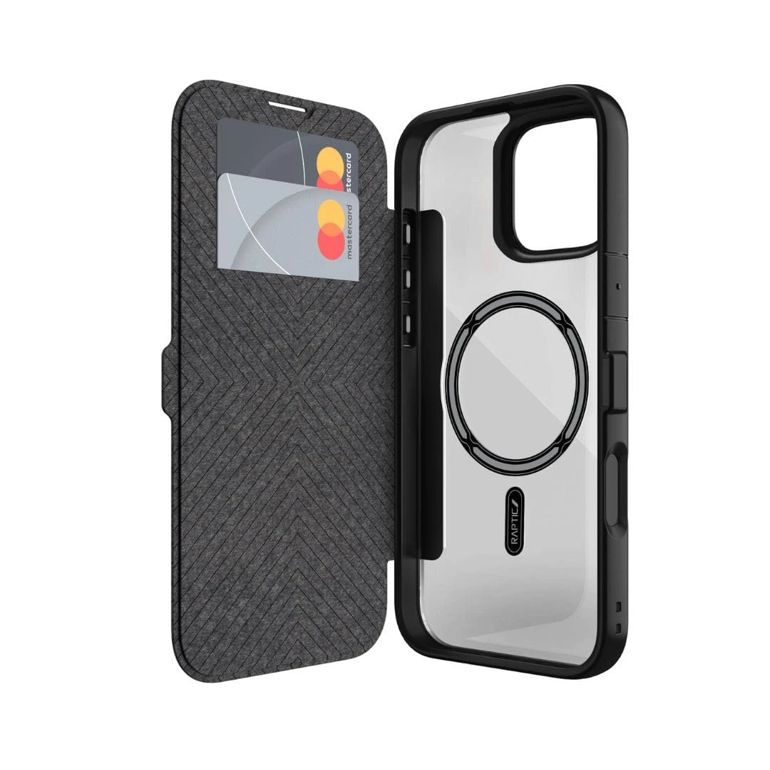 Streamline your essentials with the Raptic Urban Folio Wallet Case, designed to keep your iPhone 16 protected.