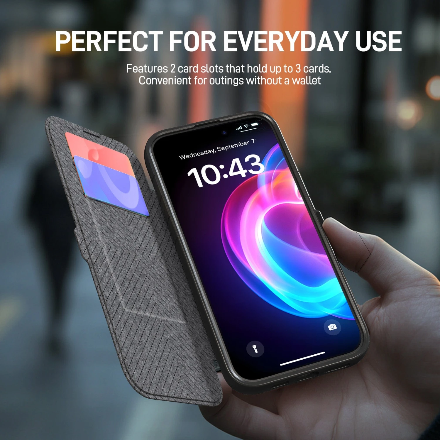 With two card slots, this case lets you securely carry your ID, credit card, or transit pass, perfect for life on the go.