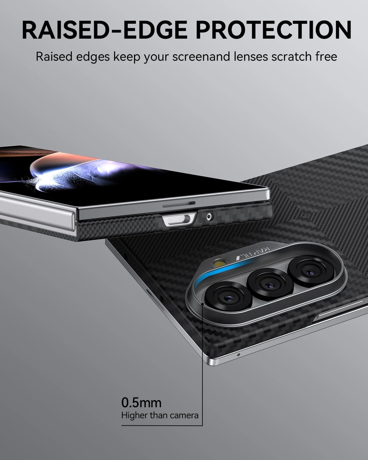 - Barely-There Armor:ย Precision 0.5mm raised bezels protect your camera and screen against scratches while keeping the Galaxy Z Fold 7โs iconic design intact, with maximum protection in a slim, vanishing-edge case.