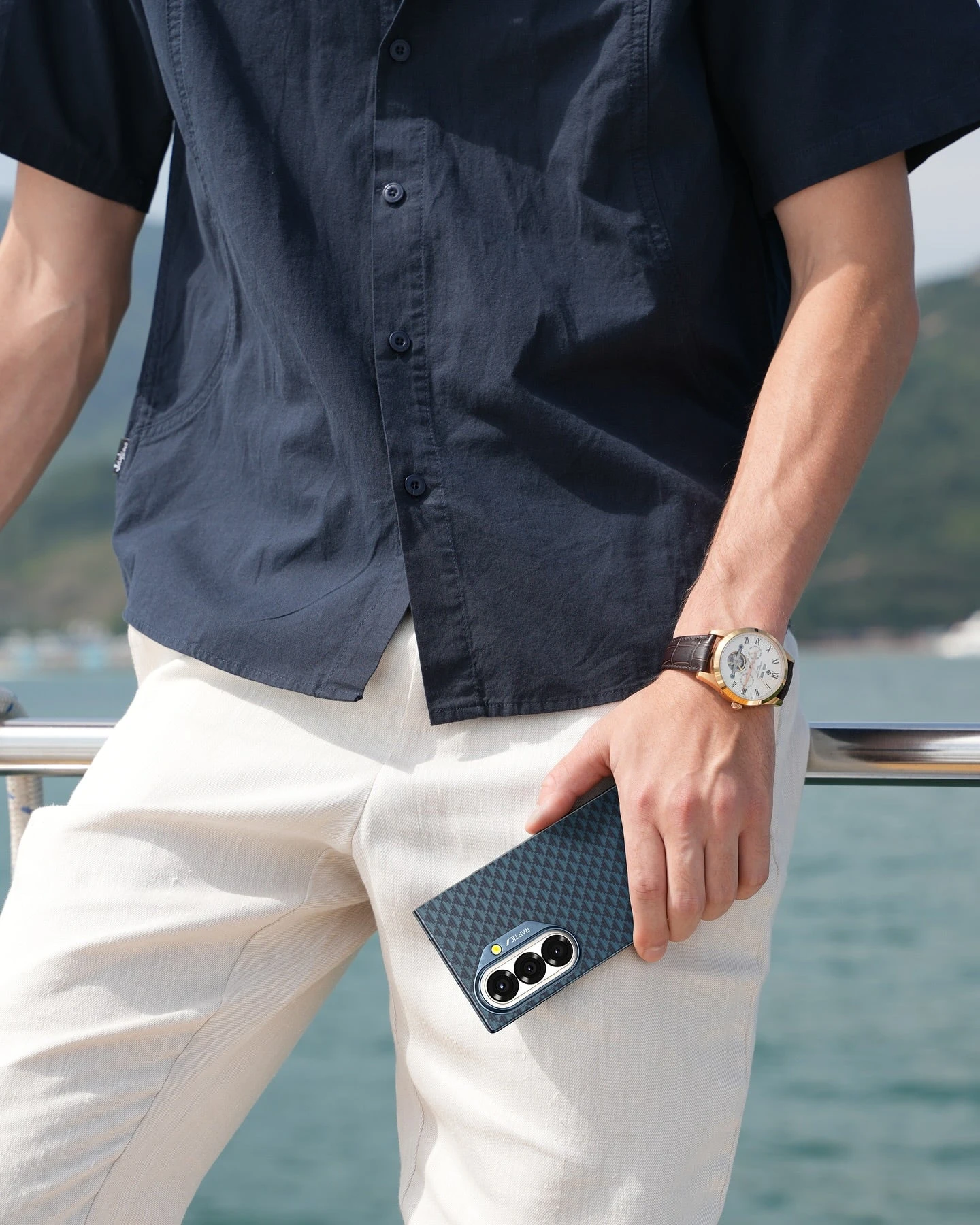 An ultra-light, super-strong, and slim aramid fibre case for Galaxy Z Fold 7โ€”delivering military-grade drop protection, a grippy yet elegant design, powerful MagSafe compatibility, and all-around defense while showcasing your deviceโ€™s original style.