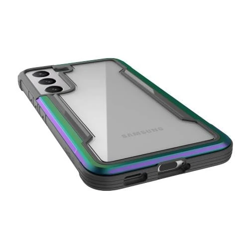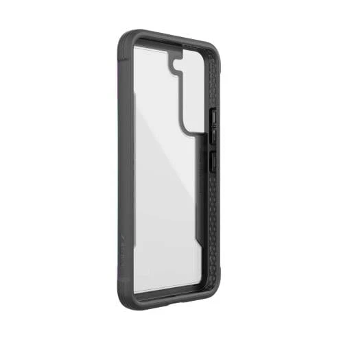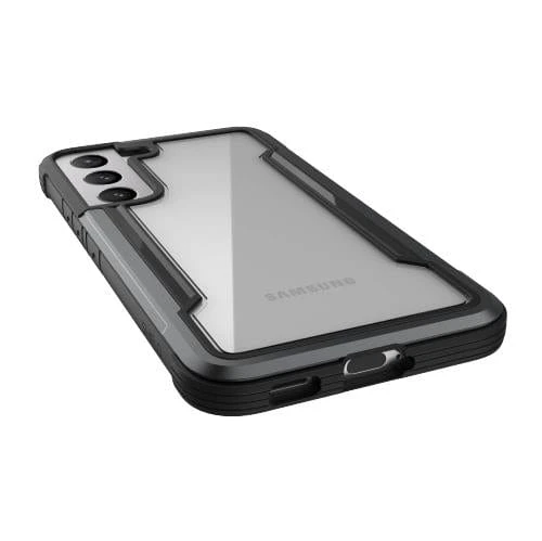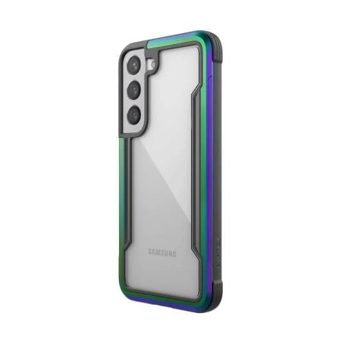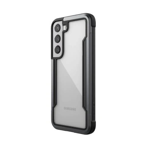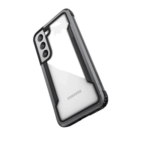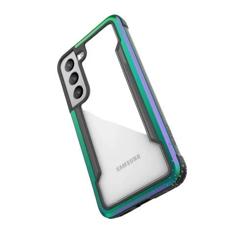 The Raptic Shield case for the Samsung Galaxy S22 made of hard polycarbonate, soft rubber, and anodized aluminium, and it provides military-grade protection. The case has a sleek and edgy design with a clear polycarbonate back to show off the phone.Â