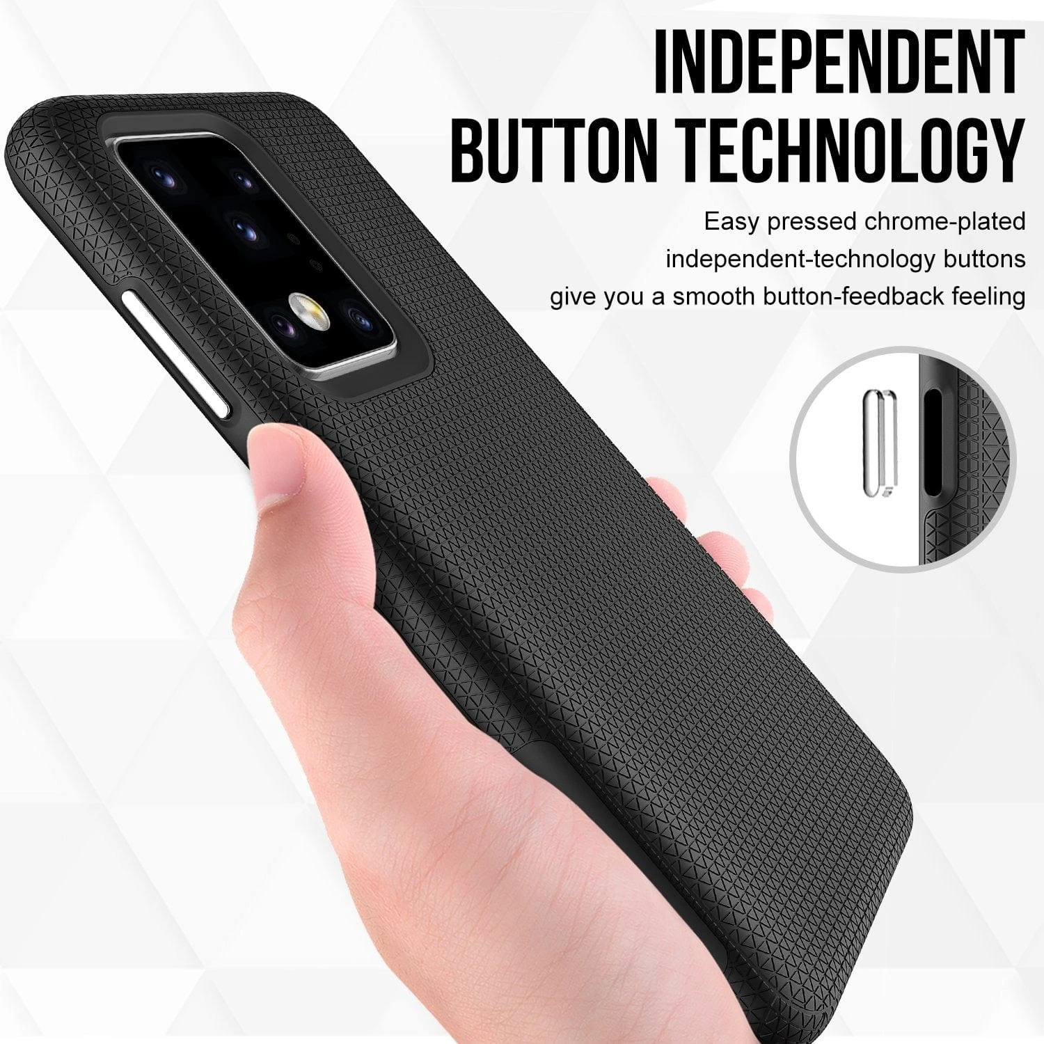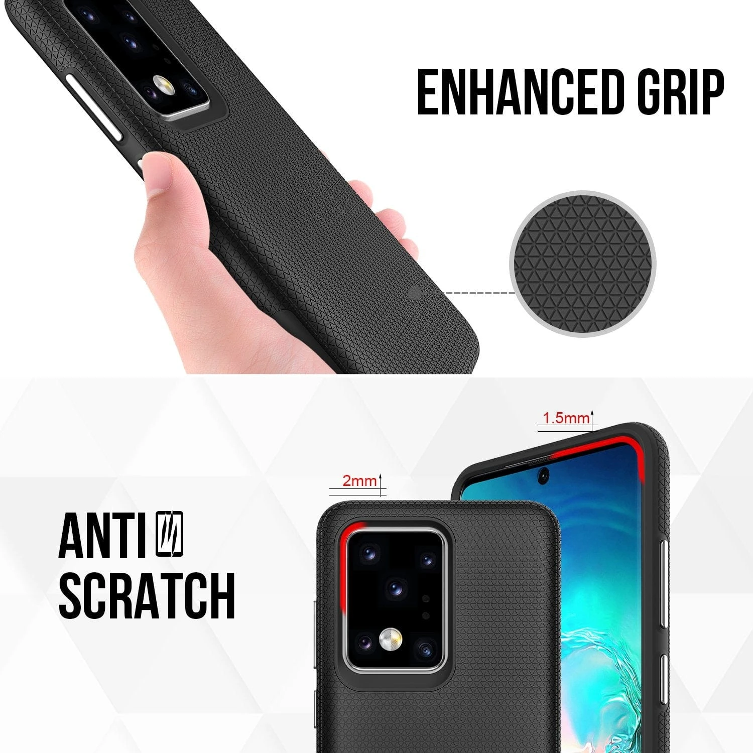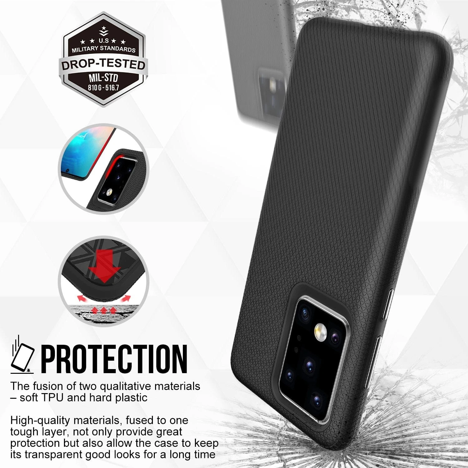 - Shock-absorbing patterned design reduces the force from drops, SGS 2 meters drop tested