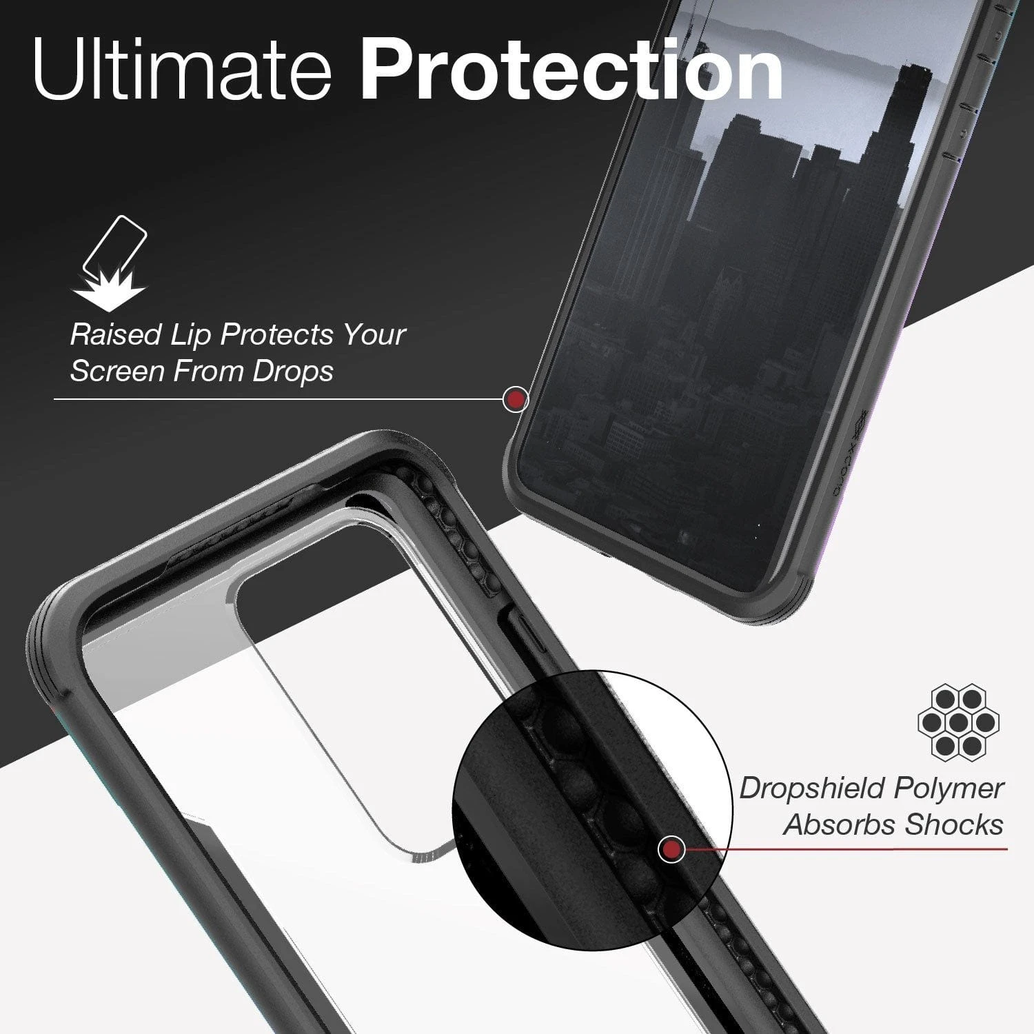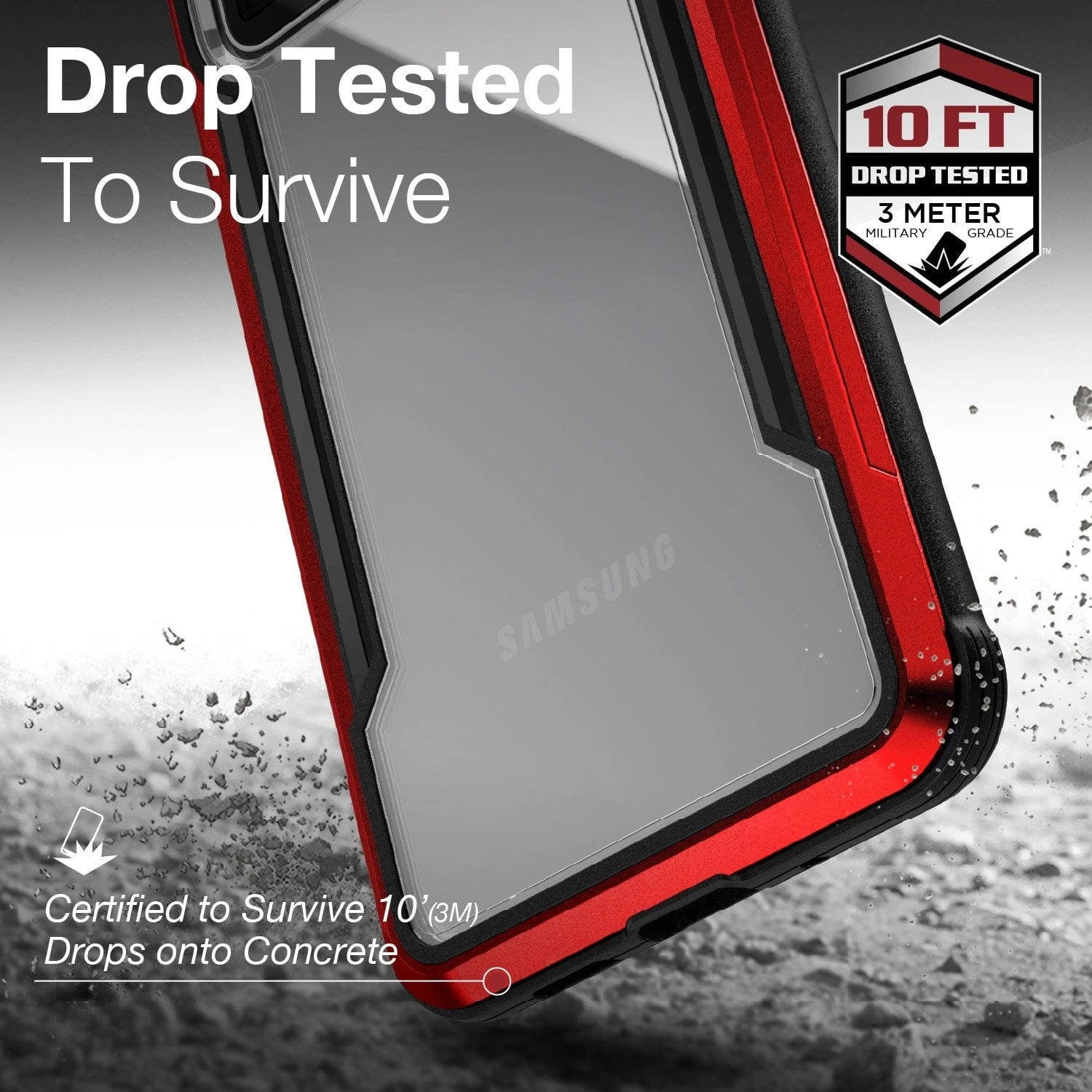 Military grade drop testedDrop tested to survive 10’ feet (3M) drops on concrete, Defense Shield combines hard polycarbonate, soft rubber and anodized aluminum to form the best protective case for your device. |